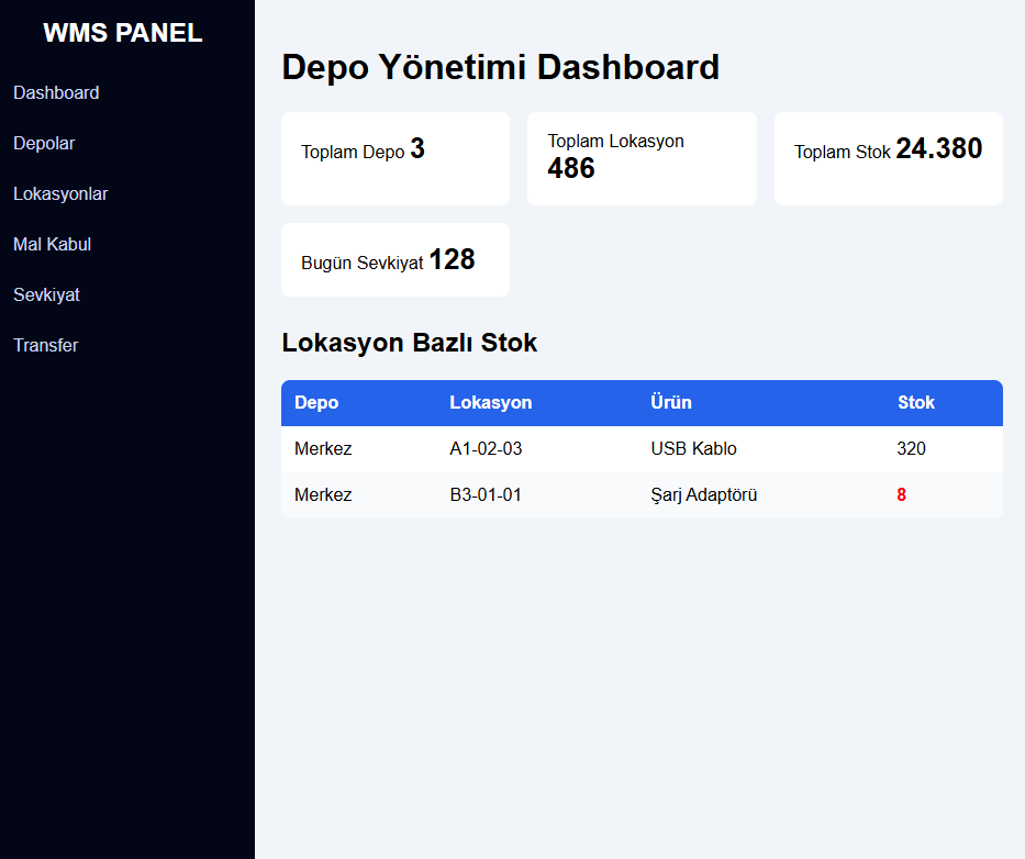 📌 Paylaşılan ekran görüntüleri ve tasarımlar örnek amaçlıdır. Nihai sistem, depo yapınıza ve operasyonunuza göre özel olarak şekillendirilir.