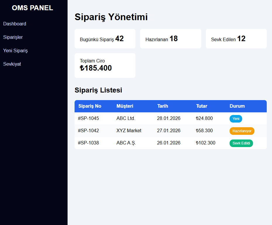 Müşteri bazlı siparişler, ürün kalemleri, sipariş durumları ve teslimat süreçleri tek merkezden izlenir.
